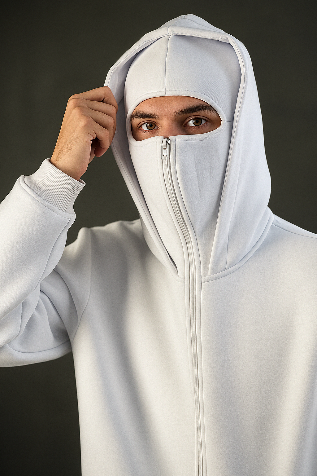 The Balaclava Hoodie reinvents streetwear: in one move, cover your face and neck to stay warm without sacrificing style.